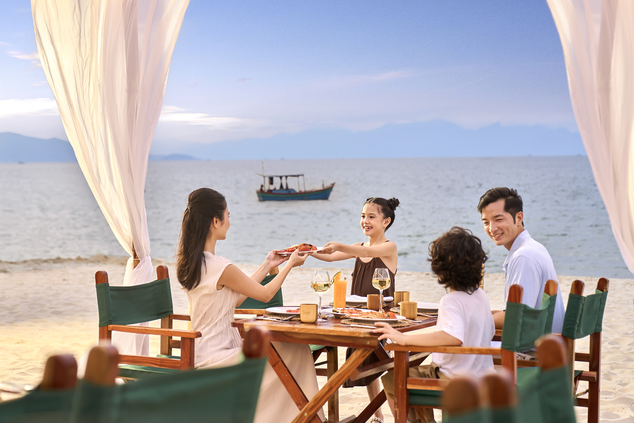 Dù là bữa ăn riêng tư tại biệt thự với thực đơn món Việt được tuyển chọn kỹ lưỡng, hay tiệc BBQ hải sản sôi động bên bờ biển trong tiếng nhạc sống, mỗi khoảnh khắc ẩm thực đều được chăm chút để gắn kết các thế hệ trong không khí sum vầy.