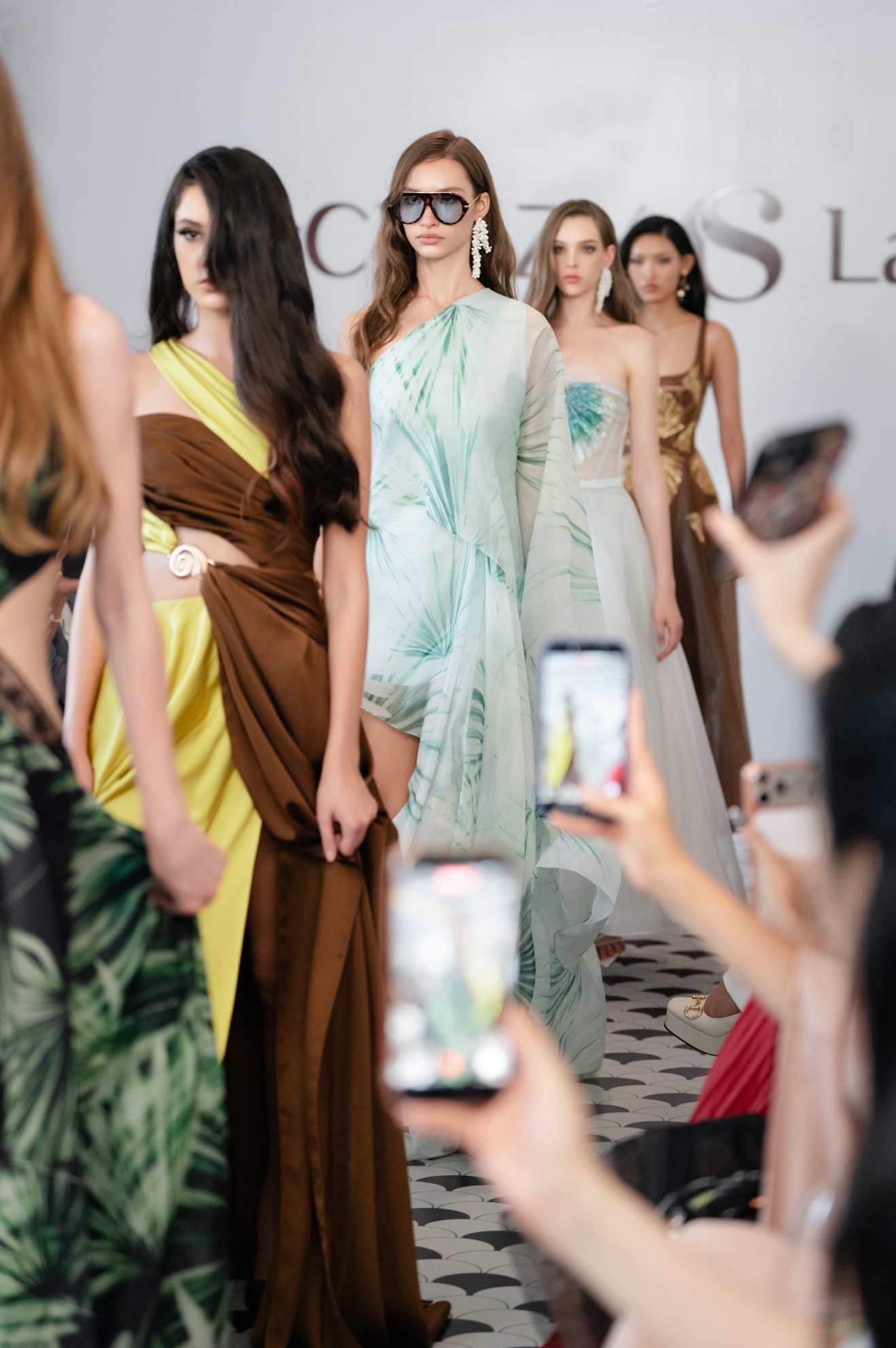 Dàn người mẫu sải bước giữa không gian “tropical resort” phóng khoáng, nhẹ nhàng nhưng vẫn sang trọng và thanh lịch.