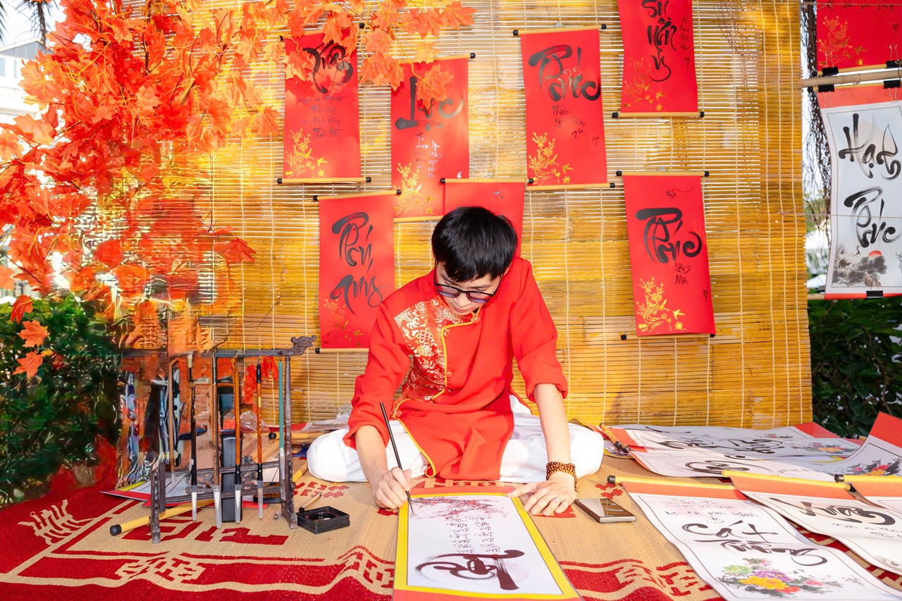 Giữa sắc Xuân rực rỡ và tiếng cười lan tỏa khắp không gian, khoảnh khắc ấy khiến du khách tự nhiên dừng lại đôi chút, lặng nhìn mực thấm dần vào trang giấy, rồi mang về cho mình một bức thư pháp – không chỉ như một kỷ vật Tết, mà còn là lời nhắc dịu dàng về tinh thần Tết xưa êm đềm.