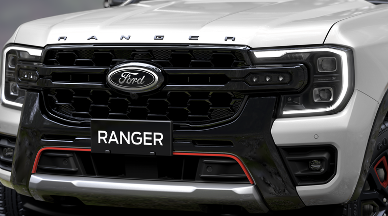 Về thiết kế ngoại thất, phần đầu xe được bổ sung các đèn trợ sáng nằm trên thanh trang trí giữa lưới tản nhiệt giúp cải thiện tầm nhìn ở nhiều điều kiện thời tiết khác nhau, đặc biệt hữu ích khi lái xe vào ban đêm. Nắp ca-pô được gắn thêm dòng chữ RANGER có màu tương phản nổi bật, lưới tản nhiệt có thiết kế mới cùng cản trước thanh chữ H màu đen bóng với đường viền đỏ tạo điểm nhấn. Bộ mâm 20 inch với phối màu tương đồng cũng giúp tăng độ tinh tế và nhận diện.